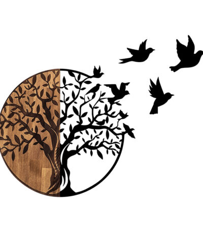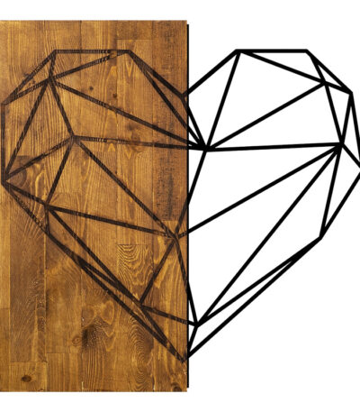 Декорација за ѕид од борово дрво Хели во природна боја и црн метал 58x3x58 см