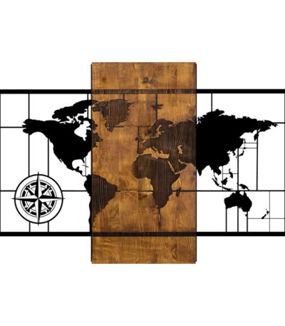Декорација за ѕид од бор Мерзо во природна боја и црн метал 90x3x58 см