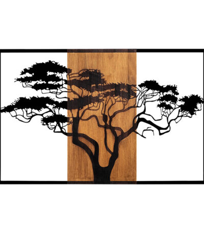 Декорација за ѕид од бор Бенање во природна боја и црн метал 92x3x71 см
