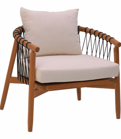 Фотелја Haibo природно тиково дрво-црно јаже-бела перница 80x75x72 см