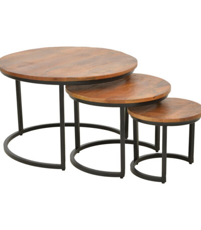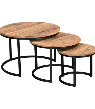 “Coffee table Frina set 3 pieces solid mango wood in natural color and black metal leg&rdquo е додаден во Вашата кошничка. Погледни кошничка