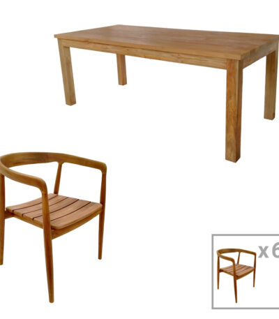 Трпезариска маса Noody-Wooly од тиково дрво, 7 парчиња, во природна нијанса