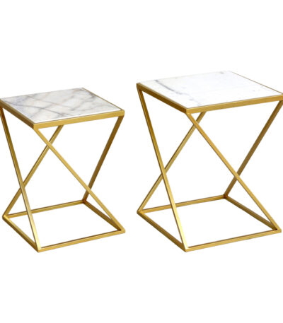 Помошни маси за дневна соба сет од 2 парчиња Zoliene Inart златен метал-бел мермер