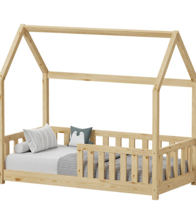Детски кревет Bambie со ограда од борово дрво Монтесори тип во природна нијанса 70x140 см