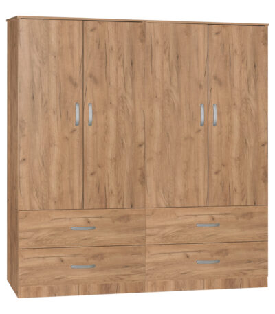 Четирикрилен гардеробер Zelia B со 4 фиоки, природна боја 158x42x180 см