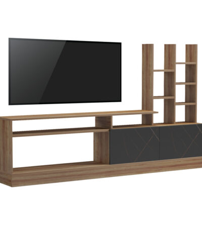 ТВ единица Seruno во даб со црн мермер 170x25x100 см