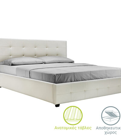 Двоен кревет Roi PU со простор за складирање во бела мат боја 160×200