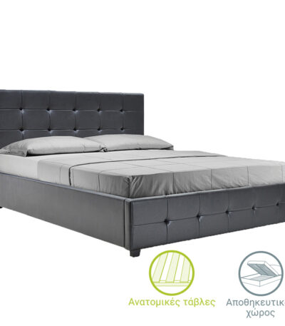 Двоен кревет Roi PU со простор за складирање во црна мат боја 160×200