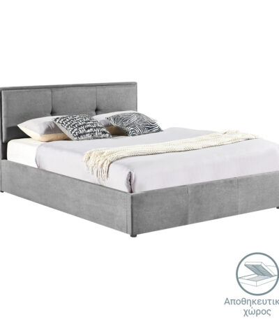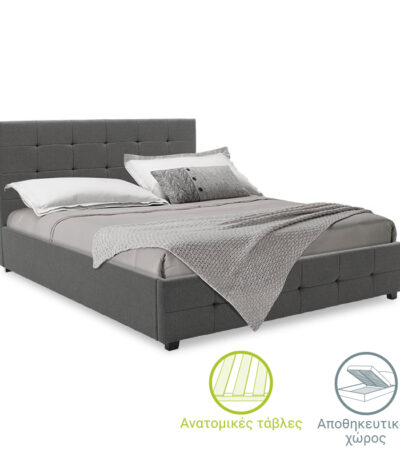 Двоен кревет Рои со простор за складирање во темно сива ткаенина 160x200 см