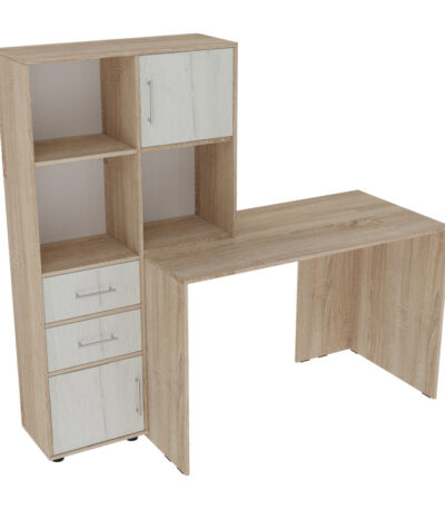 Работно биро-полица за книги Скарлет во сонома-бела боја 161x60x150 см