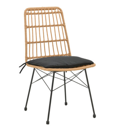 Ратан стол Naoki во природна нијанса со црна перница и црна метална ногарка 45,5×59,5x89 см