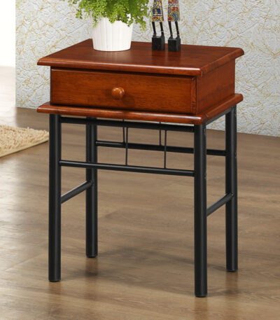 Ноќна масичка со фиока Marcole орев боја дрво-црн метал 45x33x58 см