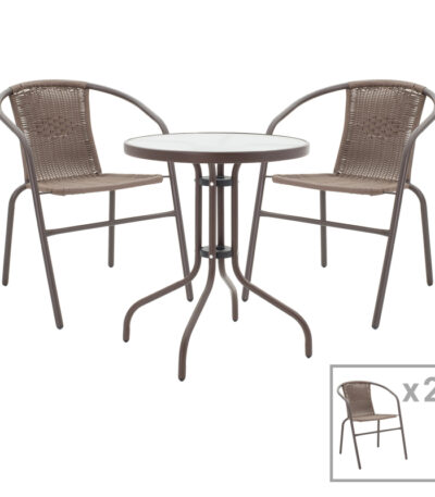 Комплет трпезариски маси Obbi-Watson од 3 кафеави метални маси D60x70 см