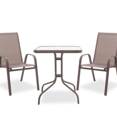 Трпезариска маса Watson-Calan сет од 3 метал-текстилен кафеава 60x60x70 см