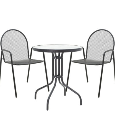 Комплет трпезариски маси Calan-Watson од 3 сиви метални и калено стакло D60x70cm