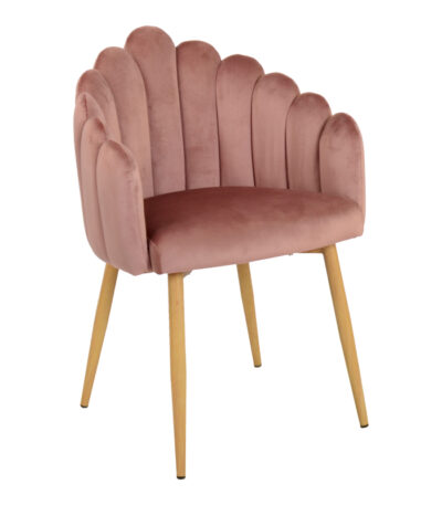 Фотелја Briella од розов кадифеен материјал и метални ногарки во природна нијанса 60x56x84 см