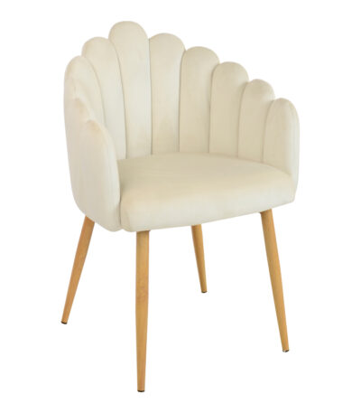 Фотелја Briella во бел кадифе и метални ногарки во природна нијанса 60x56x84 см