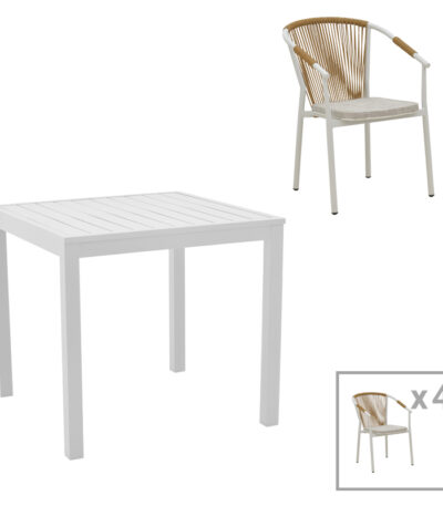 Трпезариска маса Клитон – Азели сет од 5 алуминиумски во бела нијанса 80x80x74 см