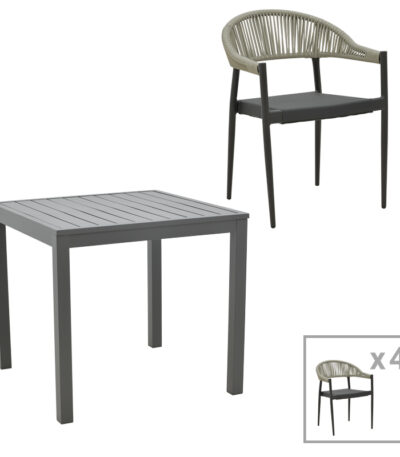 Dining table Kliton- Elation set of 5 aluminum in anthracite shade 80x80x74cm