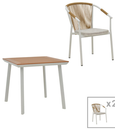 Dining table Synergy-Convince set of 3 white aluminum and plywood in natural color 80x80x74cm