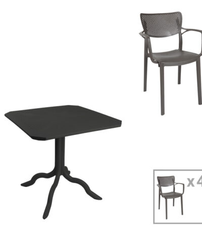 Трпезариски сет Icon-Frontline сет 5 парчиња PP темно сива 80x80x74,5 см