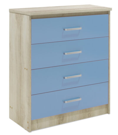 Детска комода со 4 фиоки фиока Looney во кастиљо-сина боја 80x40x95