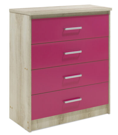 Детска комода со 4 фиоки Looney во кастиљо-розова боја 80x40x95