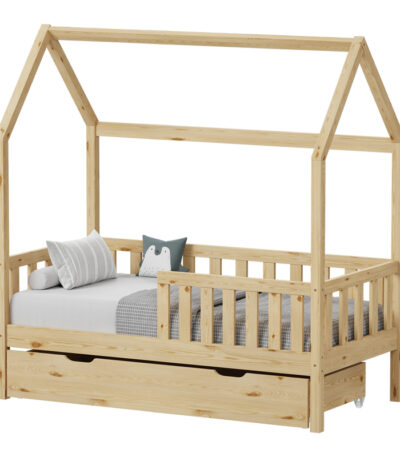 Детски кревет Бендина во стилот на Монтесори со фиока од борово дрво во природна нијанса 70x140 см