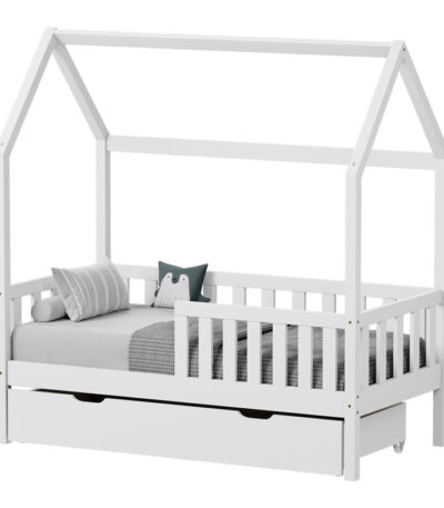 Детски кревет Бендина во стилот на Монтесори со фиока од борово дрво во бела нијанса 70x140 см