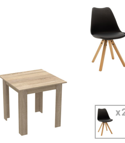 Комплет трпезариска маса од 3 парчиња Manka I-Caron во сонома-црна боја 80x80x77 см