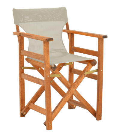 Режисерска фотелја Компа, цврсто буково дрво, орев – материјал Nexus во сиво-беж боја