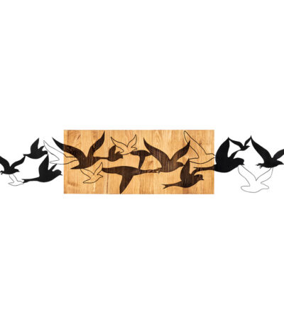 Декорација за ѕид од бор Хапер во природна боја и црн метал 42x3x58 см