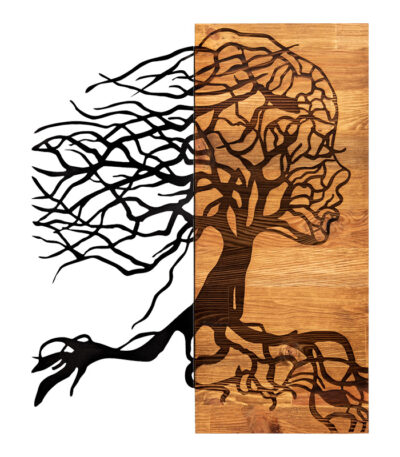 Декорација за ѕид Lifel од борово дрво во природна боја и црн метал 47x3x58 см