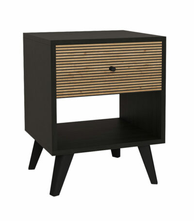 Ноќна масичка со фиока Marcole орев боја дрво-црн метал 45x33x58 см