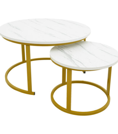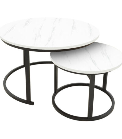 Масички за кафе Revelon сет од 2 медијапан во изглед на бел мермер 80x80x45 см