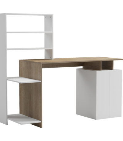 Канцелариско биро со полица за книги и шкаф Meza во сонома-бела боја 146.3x55x128.8 см