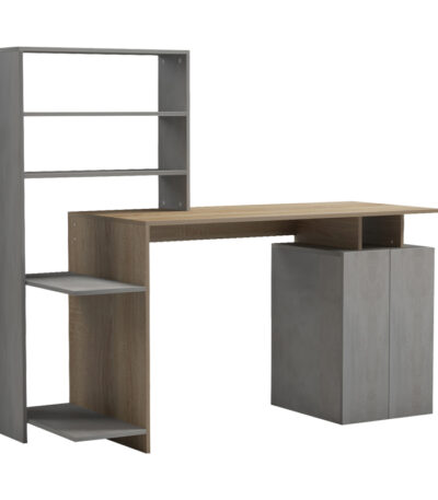 Канцелариско биро со полица за книги и шкаф Meza во сонома-сива цементна боја 146,3x55x128,8 см