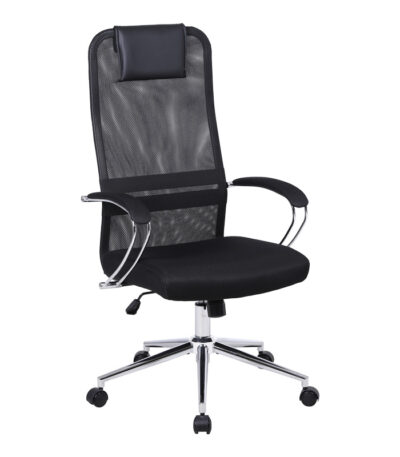 Канцелариски стол Lord I ткаенина во црна боја на абажур со ногарки од хром метал 64x61x116-126 см