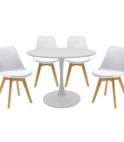 Комплет трпезариски маси Balou-Gaston од 5 MDF и PP во бела-природна нијанса Φ100x73 см