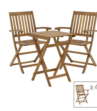 Комплет трпезариски маси Joter-Lazio од 5 преклопни маси од природно цврсто дрво акација 50x50x70 см