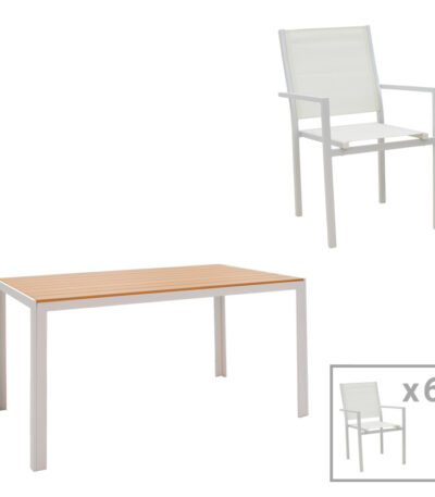 Градинарски сет за трпезарија Zacreta-Nares од 7 дела алуминиум-текстилен во бела нијанса
