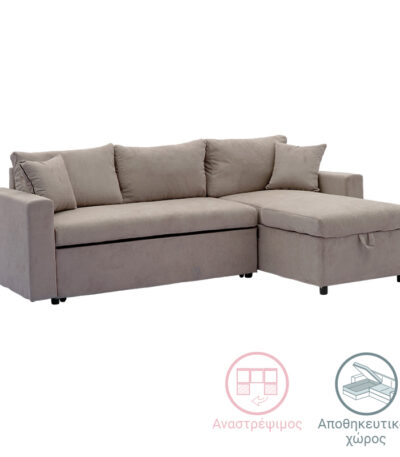 Аголна гарнитура-кревет реверзибилна ткаенина Лилијан беж 225x148x81 см