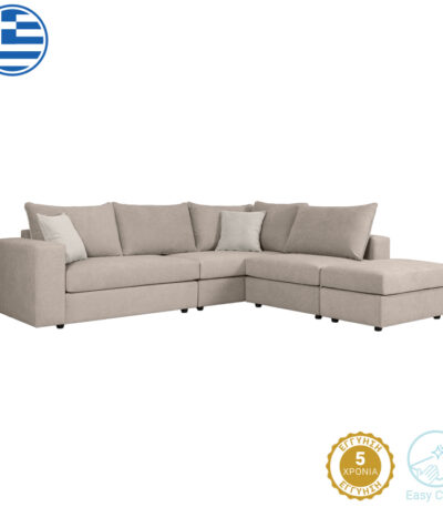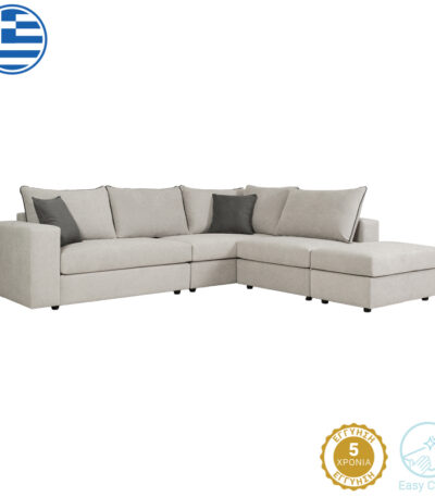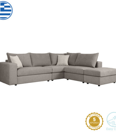 Реверзибилна полиморфна софа Лондон сиво-беж ткаенина-светло сиви перници 296x246x95 см