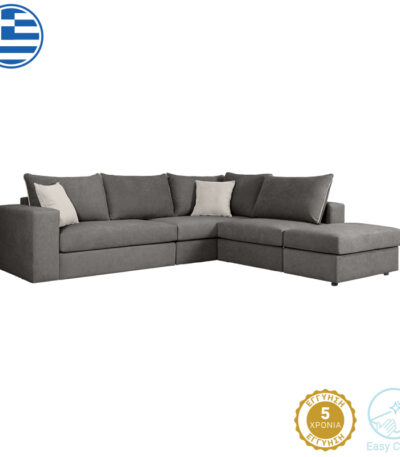 Реверзибилна полиморфна софа Лондон светло сива ткаенина-сиви перници 296x246x95 см