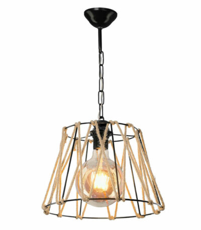 Таванска светилка Pormode црна метална-природна јаже D30x15cm