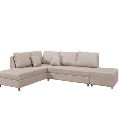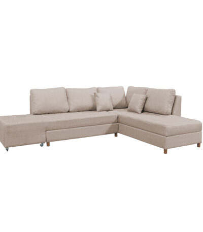 Аголна гарнитура-кревет десен агол со простор за складирање, ткаенина Lasy во беж нијанса 290x217x89 см