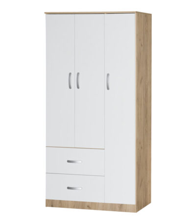 Гардеробер Зелија со 2 вратички и фиоки во бела-дабова боја 90x42x180 см