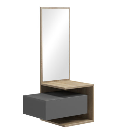 Мебел за влез „Кенди“ од „Паковорлд“, монтиран на ѕид со огледало, во антрацит-сонома завршница 49,1×31,3×90 см