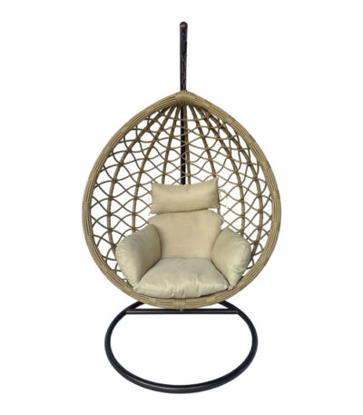 Лулашко гнездо Lyere со кафеава метална основа и беж пе ратан 120x108x195 см