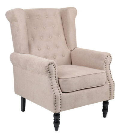 Фотелја Piore беж ткаенина и црна ногарка од дрво од гума 77x80x106 см